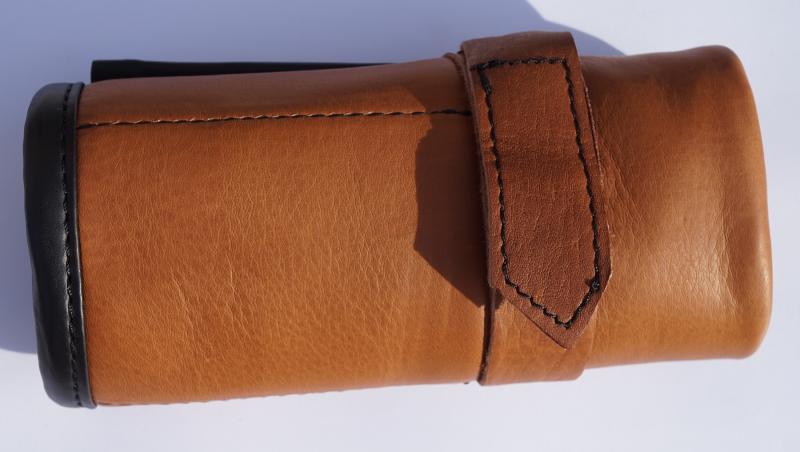Die Rolle ist aus braunem Glattleder. Innenseite weiches Velours