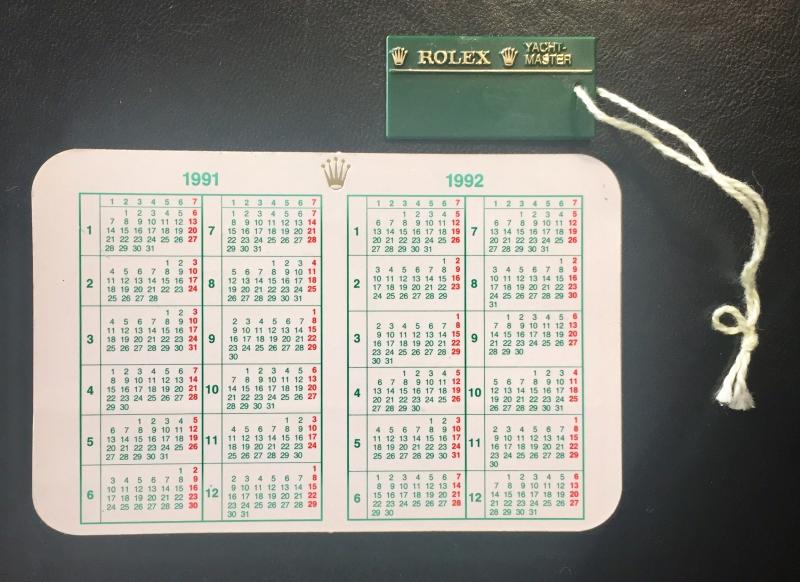 Zum Verkauf steht ein Kalender aus 1991-1992 plus ein Yacht Master Hang Tag