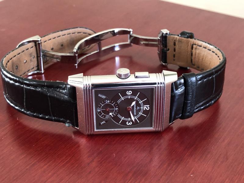 ich verkaufe meine JLC Reverso Duoface. Die Uhr ist in einem schönen gebrauchten Zustand. Die Gläser sind ohne Kratzer. Lediglich auf dem Gehäuse sind leichte Nutzungsspuren sichtbar. Sie läßt sich gut aufziehen und läuft wie sie soll hervorragend durch.