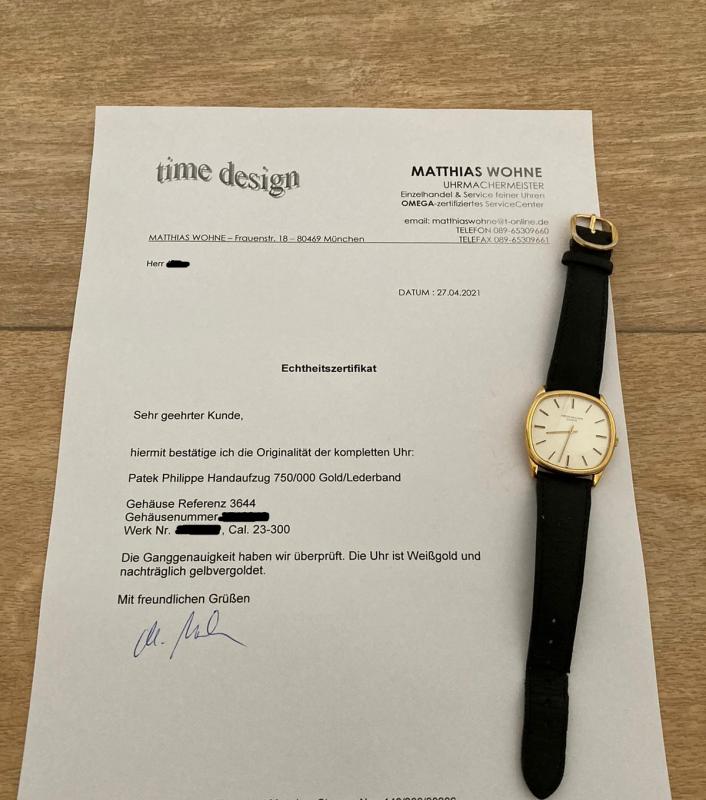 Lieferumfang: Uhr, Echtheitsszertifikat