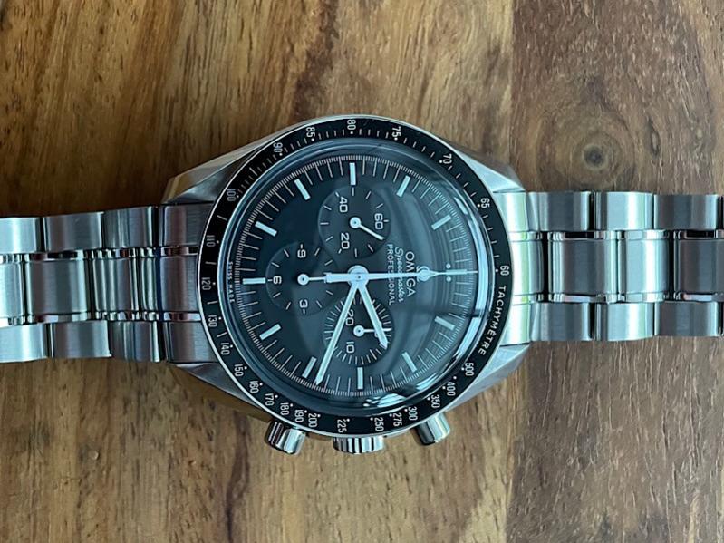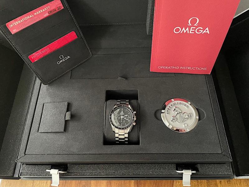 Bei folgender Speedmaster Plexi aus 2020 wurde lediglich das Band gekürzt. Außer zur Anprobe wurde sie nicht getragen, dementsprechend ist sie ohne Gebrauchsspuren und von einer neuen nicht zu unterscheiden.