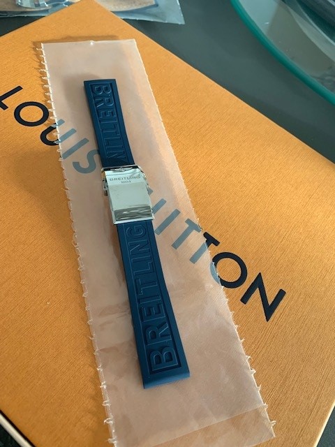 5. Breitling Kautschukband mit Stiftschließe, ein mal an der Uhr gehabt, so gut wie ungetragen, 70 Euro