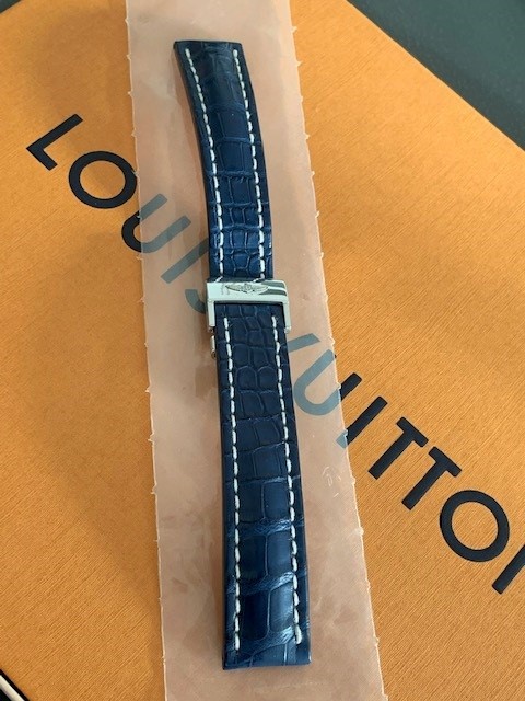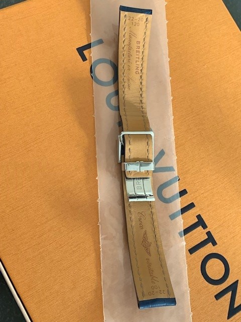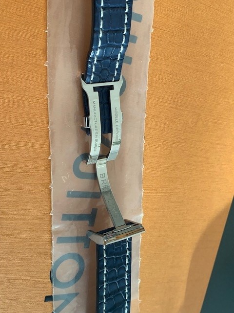4. Breitling Kroko/Alligator Leder Band blau mit Faltschließe, ungetragen, 350 Euro