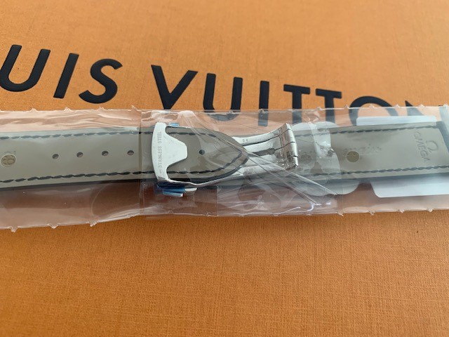 1. Omega Krokolederband mit Faltschließe für Omega Speedmaster Moonwatch Professional, ungetragen, 375 Euro (NP 230 Band + 330 Schließe). Es gab scheinbar 2 Varianten der Faltschließe und das sollte die im Januar 2020 aktuelle Faltschließe sein.