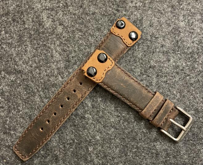 Nr. 5 : 10e - Oben Rubber unten Leder - 19mm auf 18mm mit Dornschließe aus Stahl - 120mm/ 73mm - schönes Schokoladenbraun - 2 x vorhanden