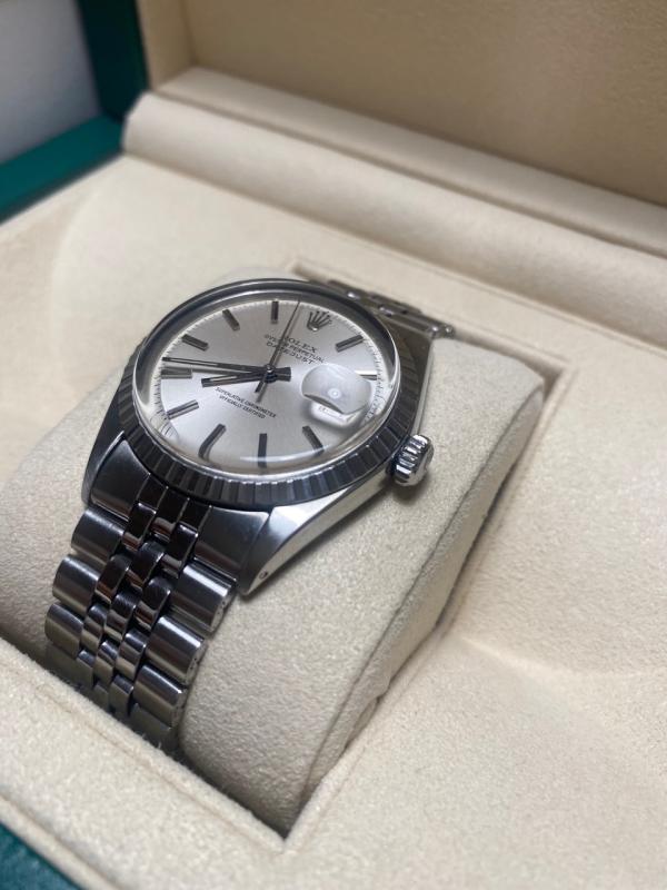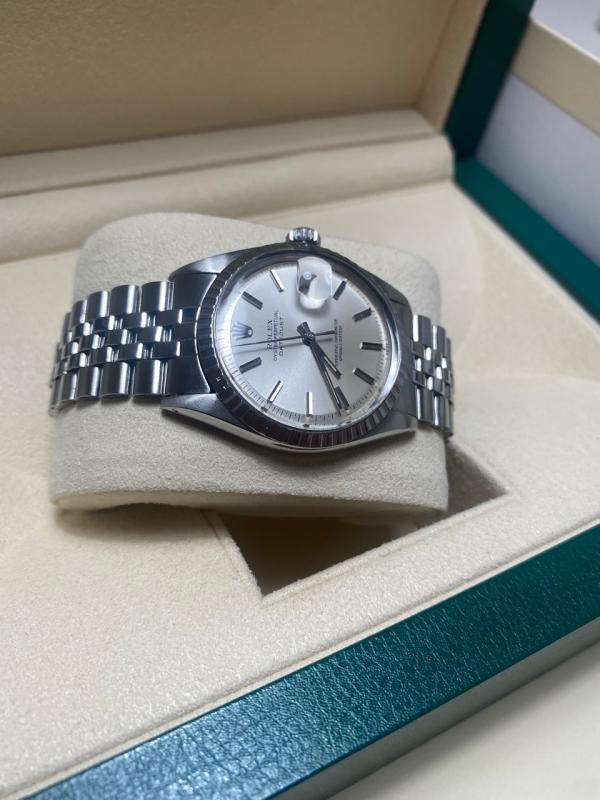 Verkauft wird eine Rolex Datejust 1603 von 1974. Ich habe Sie vor ca einem Jahr von einem sehr netten älteren Mann erworben. Er war selbst Sammler und es war nicht einfach an die schöne Ur zu kommen. Leider werde ich mit der Uhr nicht richtig warm und ich trage Sie kaum. Die Rolex Datejust 1603 36mm befindet sich dank einer Revision aus 2021 in einem sehr guten Zustand. Indizes, Zeiger und Ziffernblatt sind in einem extrem guten Zustand. Ich kann viel schreiben und ich denke die Bilder sagen alles :)