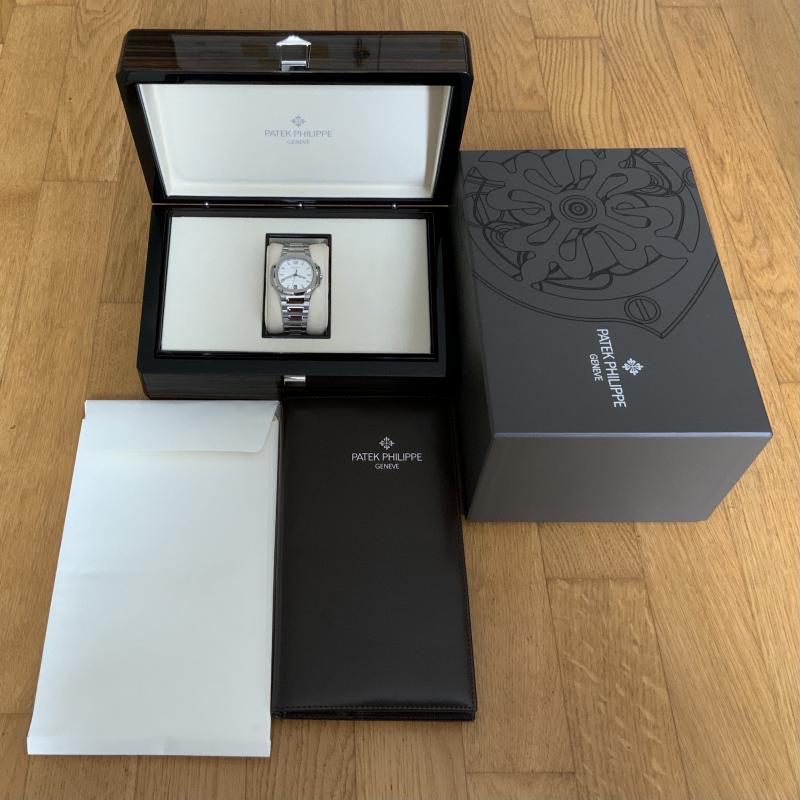 Zum Verkauf steht meine PP Nautlius in der Midsize Größe mit dem silber/opal Zifferblatt. Die Uhr habe ich letztes Jahr neu gekauft und abgesehen von der Anprobe beim Konzi ist die Uhr ungetragen. Der Zustand ist dementsprechend neuwertig, ohne Kratzer oder sonstige Überraschungen. Das Zubehör ist komplett so wie bei der Auslieferung.