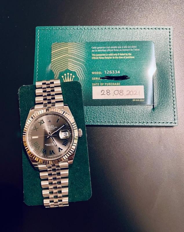 Ich verkaufe eine wunderschöne Datejust mit dem Wimbledon Dial aus 2021. Die Uhr wurde sorgfältig getragen -- siehe Bilder.