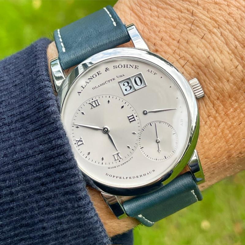 Die von mir angebotene Lange 1 kommt mit allem was dazu gehört; Garantiebuch, Manual, Box und Schuber, sowie das originale Band und Schliesse. Zusätzlich gebe ich das de-lugs Band in Anthrazit dazu. Die Uhr passt vom Farbkonzept zu allen Bändern. Gerade wer an und an mal wechselt, wird jede Spaß mit der Uhr haben.