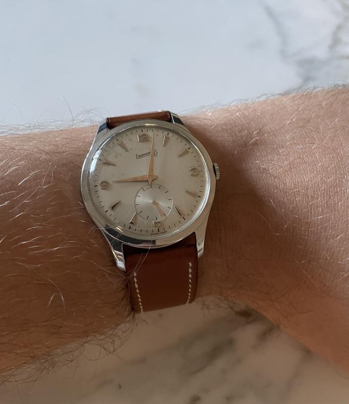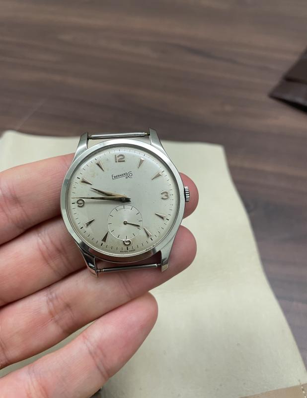 ich möchte mich von ein paar Vintage Teilen trennen zu denen ich durch einen Nachlass gekommen bin. Hier kommt eine Vintage Eberhard & Co im Calatrava Case zum Verkauf. Grösse ca. 37mm. Die Uhr wurde vor ca. 2 Jahre revisioniert und lag seitdem im Safe.