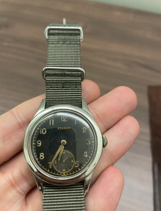 ich möchte mich von ein paar Vintage Teilen trennen zu denen ich durch einen Nachlass gekommen bin. Hier kommt eine Vintage Eterna mit schönem gilt dial zum Verkauf. Grösse 34/35mm. Servicehistorie ist mir unbekannt. Die Uhr läuft nach 2-3 Kronendrehungen an.
