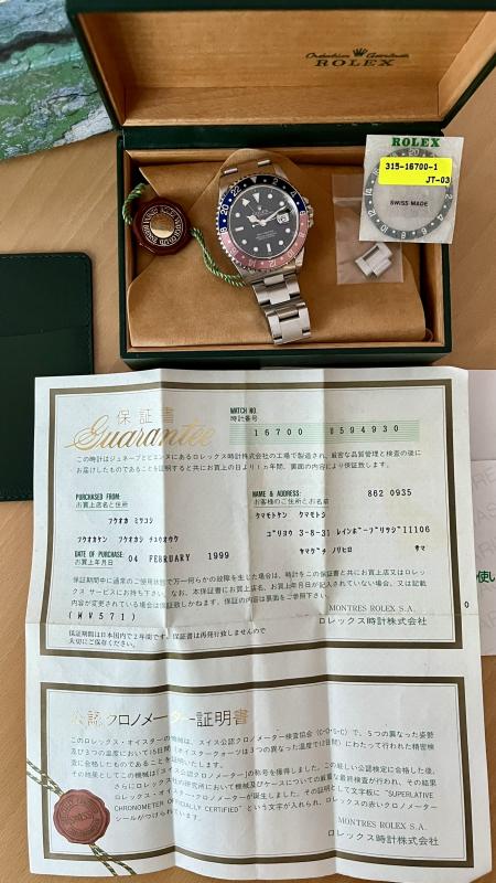 Ich Verkaufe eine Rolex Pepsi 16700 im Auftrag für meinen Bruder. Es ist ein Fullset aus 04/1999 inkl. Schwarzem Zusatz inlay. Die Uhr wurde getragen aber nicht gerockt, dementsprechend in gutem Zustand. Ich hoffe die Bilder sind gut und scharf genug um den zustand der Uhr zu beschreiben.