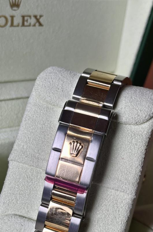 Automatikwerk, Durchmesser 40 mm, Gehäuse Edelstahl/Gold 18 Karat, Oysterband Edelstahl/Gold 18 Karat, Saphirglas, Solid-Ende-Link ohne durchgebohrte Hörner, goldene Krone.