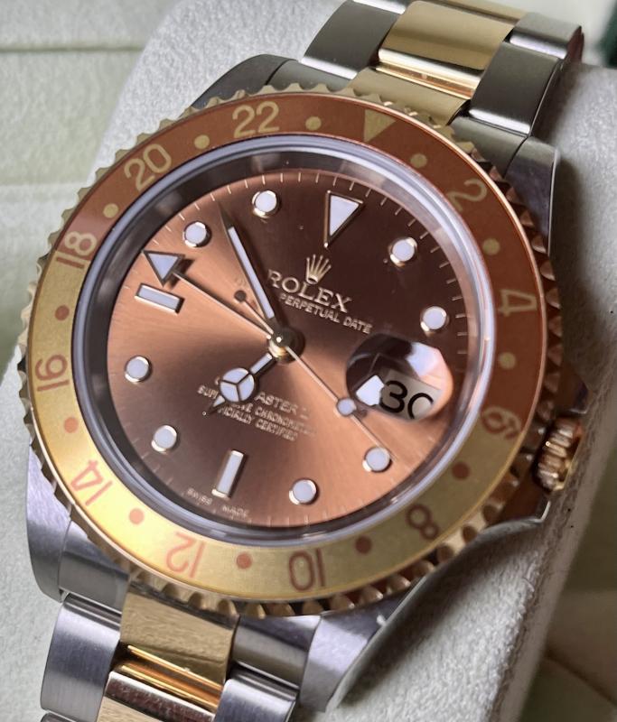 Seltene ROLEX 16713 T „Tigerauge / Root Beer“ GMT-Master II im Fullset
