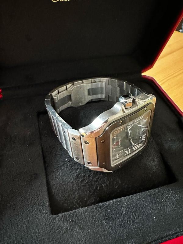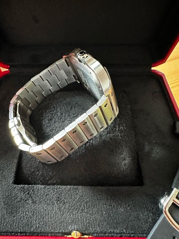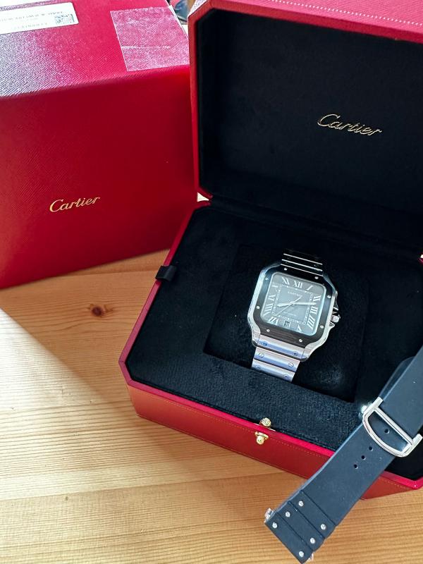 Ich trenne mich von meiner Santos de Cartier. Die Uhr wurde bei Wempe gekauft und kommt im Fullset inkl. Kautschuk Armband.