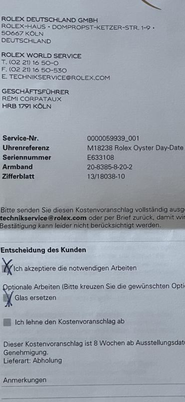 Die Uhr befindet sich momentan bei Rolex Köln zur Revision.