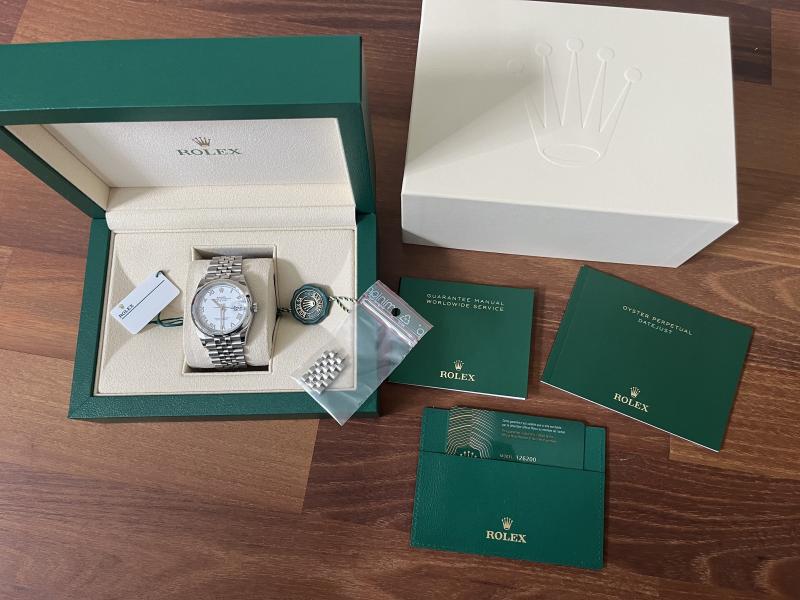 Nur 2-3x getragene Datejust 36, Ref. 126200, weisses Zifferblatt mit röm. Ziffern - ein zeitloser Klassiker