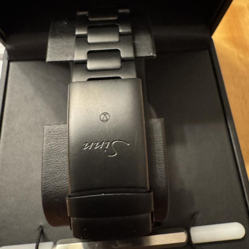 Die mächtig-prächtige Sinn U 50 s, komplett in schwarz mit Stahlband. Sehr schwer, sehr markant, sehr prägnant - und hier komplett ungetragen.