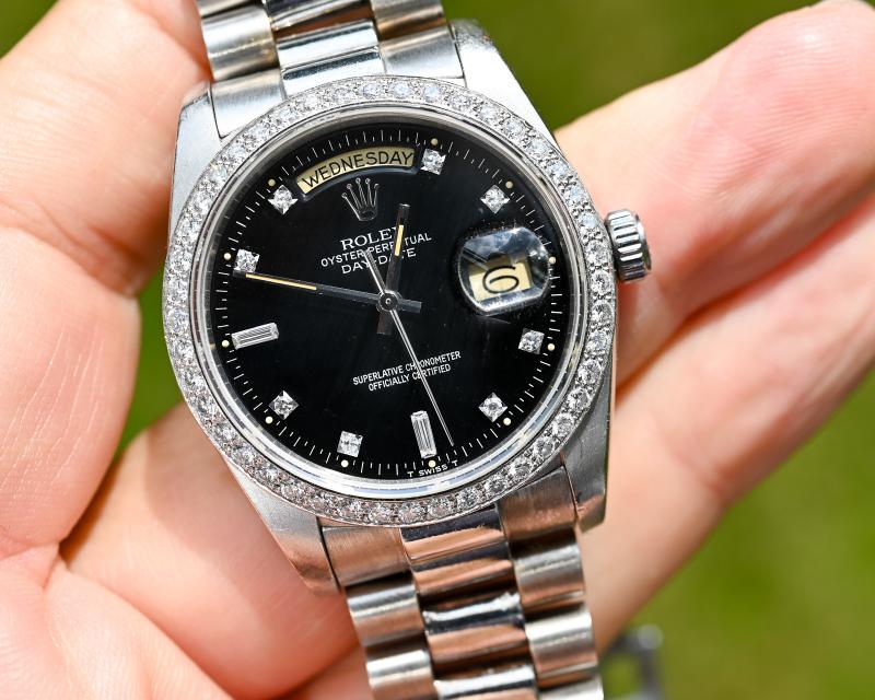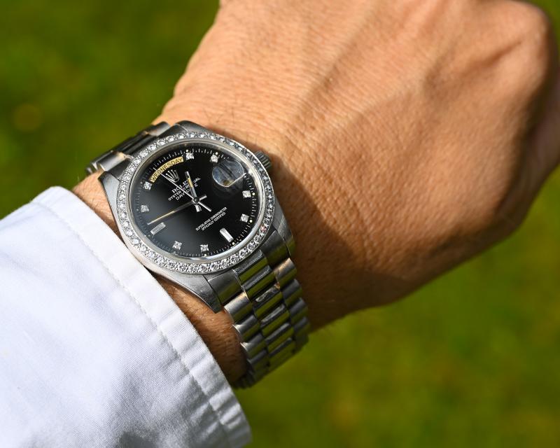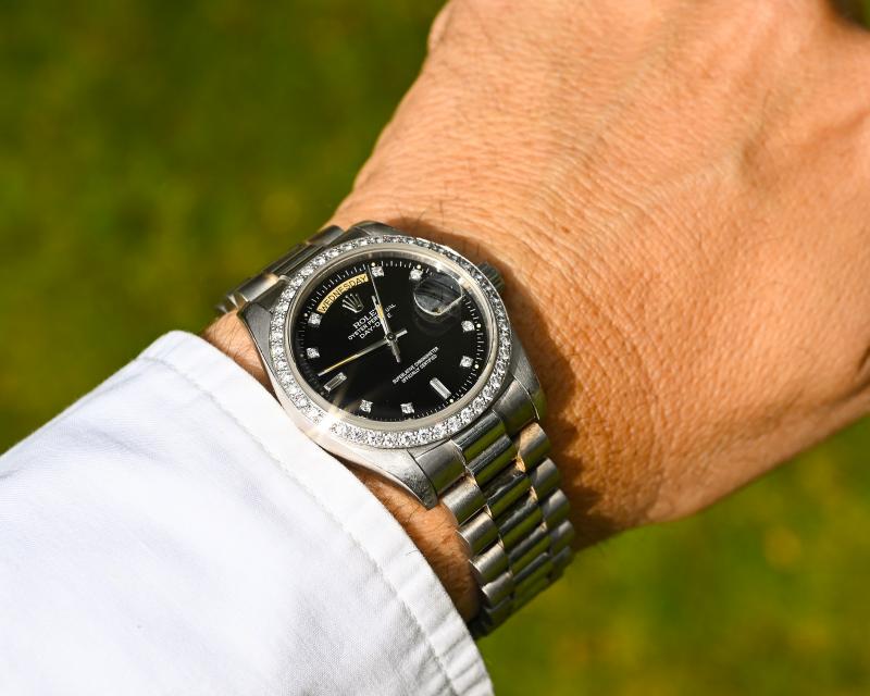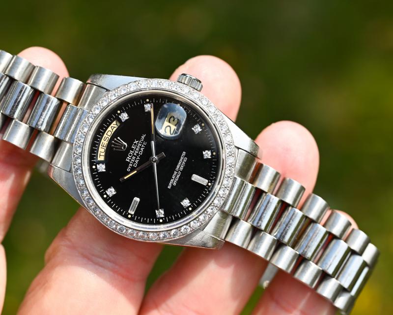 Im Vergleich zu aktuellen Modellen bietet diese Uhr einen enormen Gegenwert: Eine moderne Day-Date 36 mm mit Diamantblatt und – Lünette liegt heute bei etwa 53.000 €. Natürlich ist ein direkter Vergleich schwierig, aber schon damals gehörte die 18049 zu den hochpreisigsten Modellen im Rolex-Portfolio. Mit diesem Exemplar erwerben Sie nicht nur eine luxuriöse Uhr, sondern auch ein Stück Uhrengeschichte – und das in einem außergewöhnlich guten Zustand zu einem absolut fairen Preis.