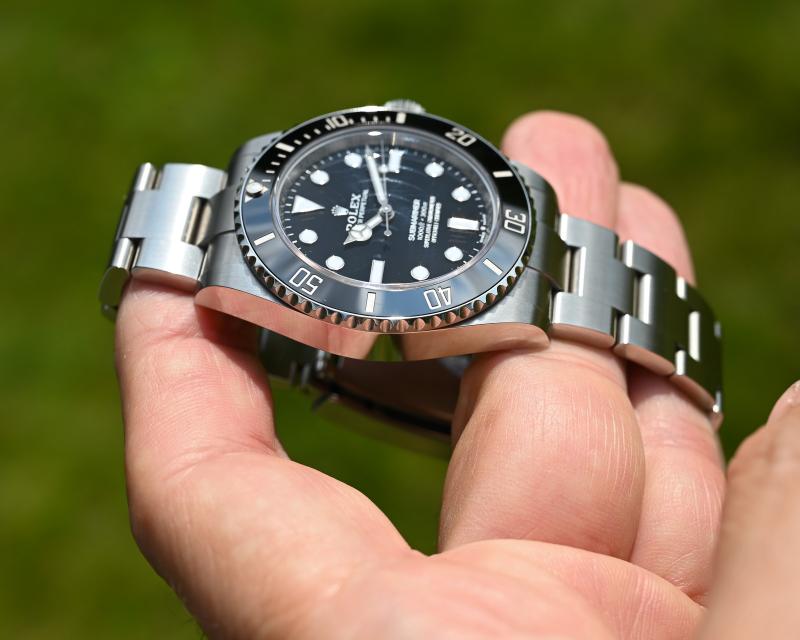 Viele Sammler – mich eingeschlossen – bevorzugen das Submariner-Modell ohne Datum gegenüber der Version mit Datumsanzeige. Diese Uhr lässt sich sowohl sportlich als auch elegant kombinieren und ist damit ein vielseitiger Begleiter für nahezu jeden Anlass.