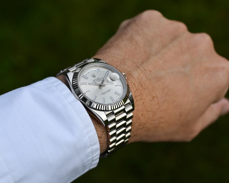 Die Day-Date 40 kombiniert zeitlose Ästhetik mit der unverwechselbaren Präsenz des President-Armbandes und verkörpert wie kaum ein anderes Modell den Inbegriff von Luxus, Klasse und Understatement.