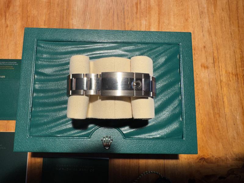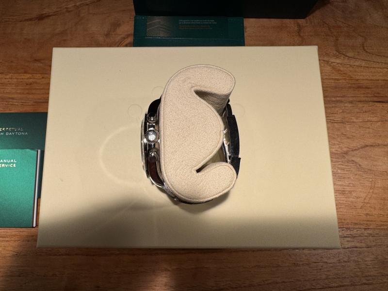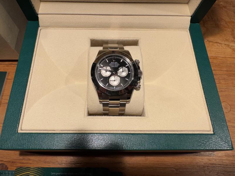 Sie wurde bei einer deutschen Rolex Boutique erworben und nie getragen, da ich nie richtig mit der Daytona warmgeworden bin. Nun muss sie wie meine andere Daytona für ein anderes Projekt gehen.