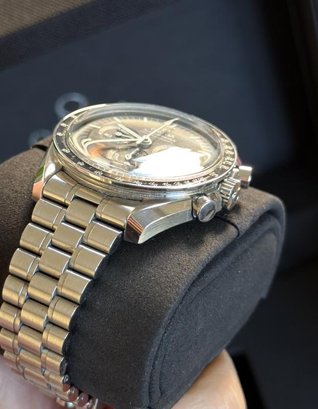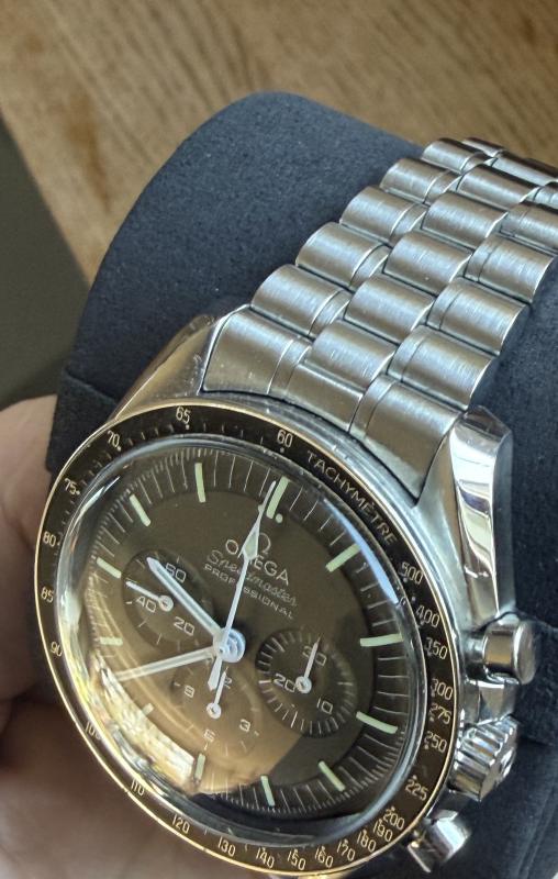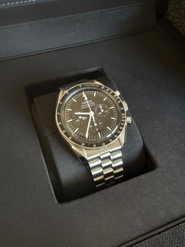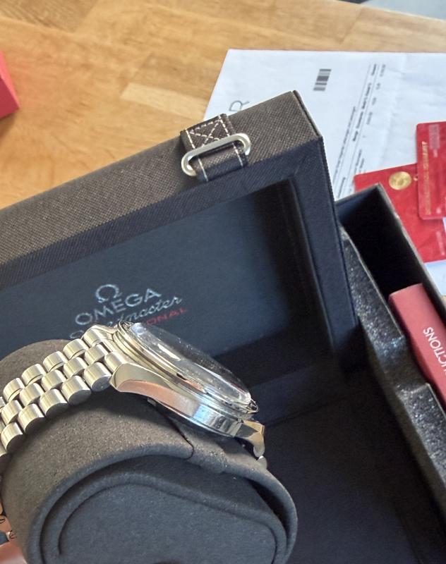 Bekommt keine Wristtime mehr; wurde artgerecht (KEIN Einsatz im oder unter Wasser etc.) und als Toolwatch eingesetzt, daher sind auch Gebrauchsspuren sichtbar, welche diese Uhr eher nicht zu einem Sammlerobjekt machen. Kerbe in der Gehäuseflanke bei ca. 02:00 Uhr und auf der 09:00-Seite einige Mikrokratzer; ebenso auf dem Gehäuseboden. Ich habe versucht, dies bestmöglich fotografisch einzufangen. Eine komplette Beseitigung dieser Spuren würde eine Revision bei Omega nötig machen, weswegen ich die Kosten hierfür vom Preis abziehe. Voller Lieferumfang von deutschem Konzessionär inkl. Hang Tag und der Restglieder des Armbandes. Die Uhr kann mit INTEX versandt werden, ich würde aber aufgrund des Zustandes eine vorherige Besichtigung vorziehen. Originalrechnung aus 2022 wird mitgegeben.