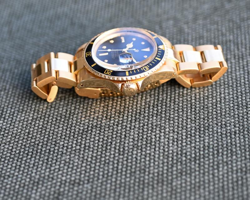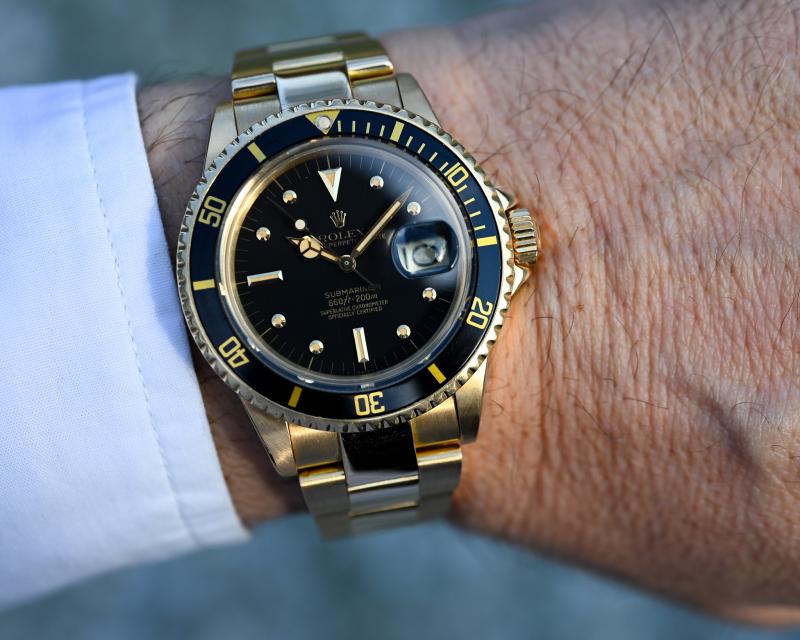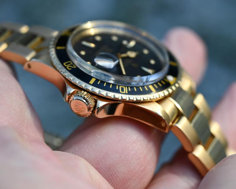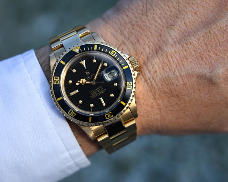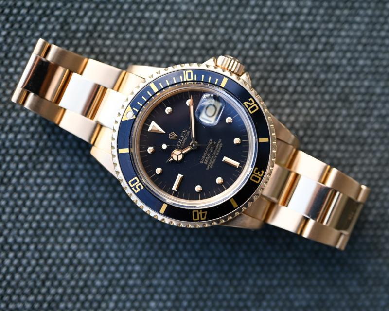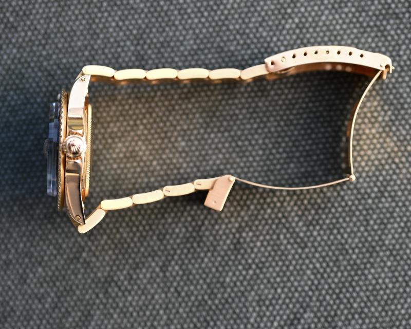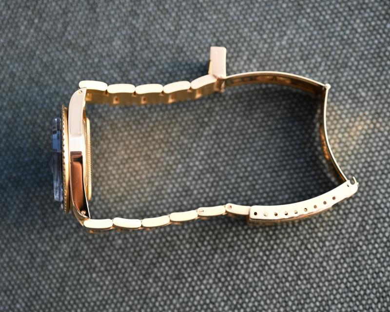 Das massive Gelbgoldgehäuse unterstreicht den kraftvollen Charakter dieser frühen goldenen Submariner und verleiht der Uhr eine Präsenz, die zugleich sportlich und luxuriös wirkt – ein Stil, der heute wieder verstärkt an Bedeutung gewinnt.