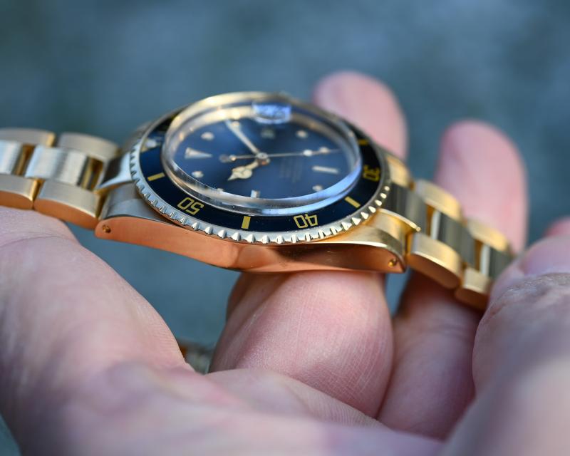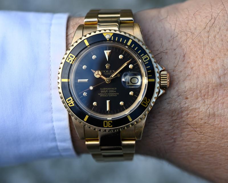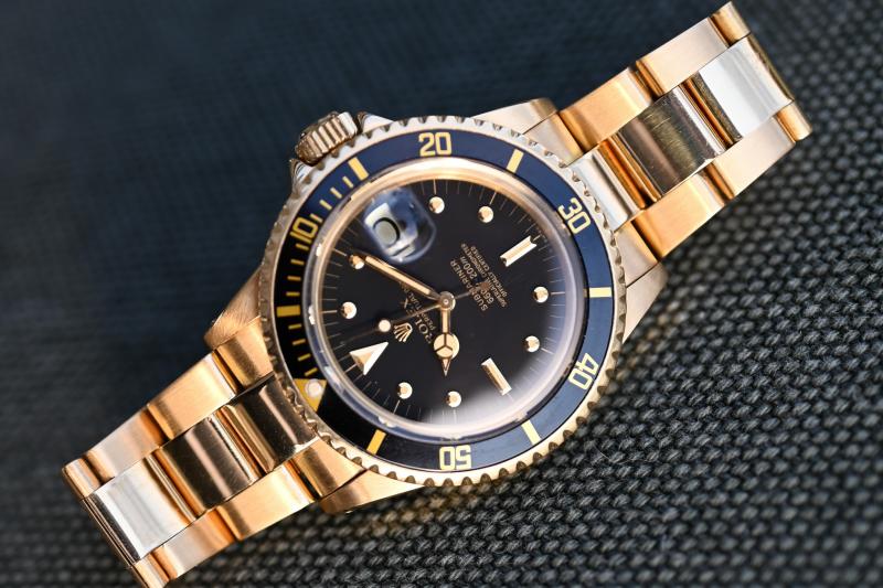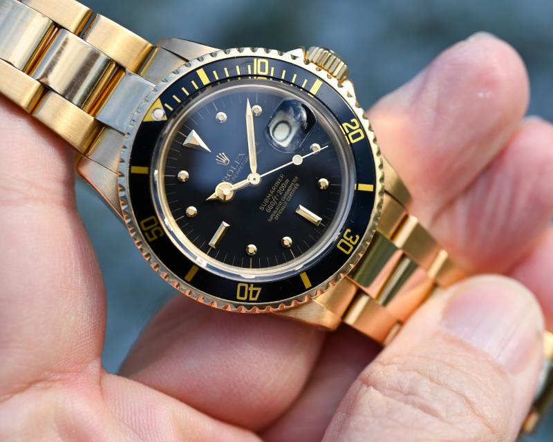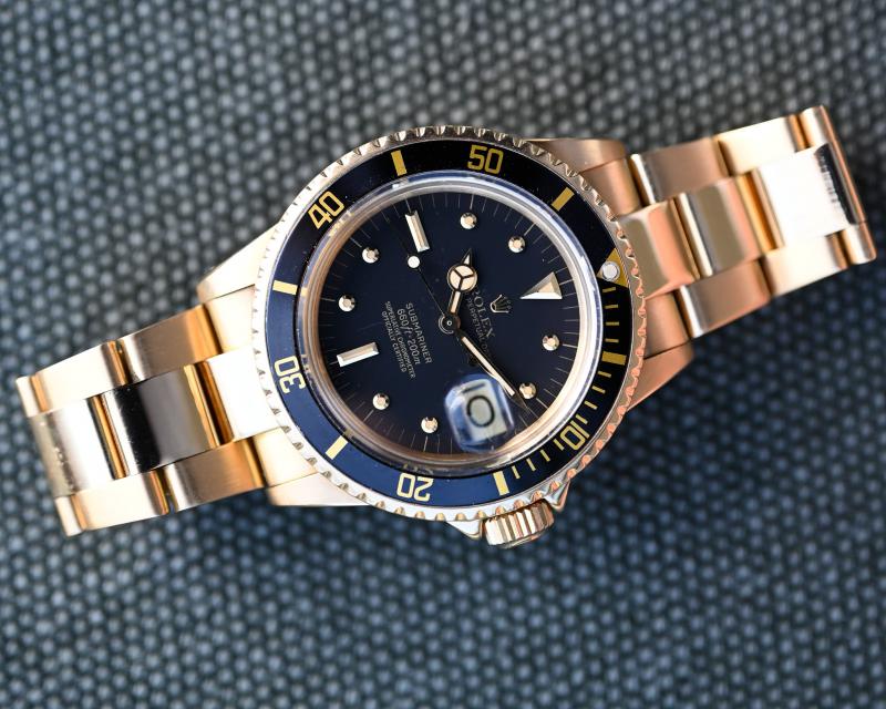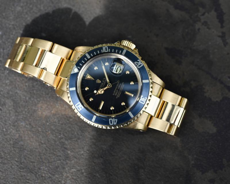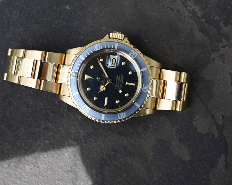 Eine Rolex Submariner 1680/8, die durch den sehr schönen Erhaltungszustand und insbesondere das originale Gelbgoldband überzeugt. Ein authentisches Vintage-Stück mit starker Ausstrahlung und zunehmender sammlerischer Relevanz – heute deutlich seltener zu finden als noch vor wenigen Jahren.