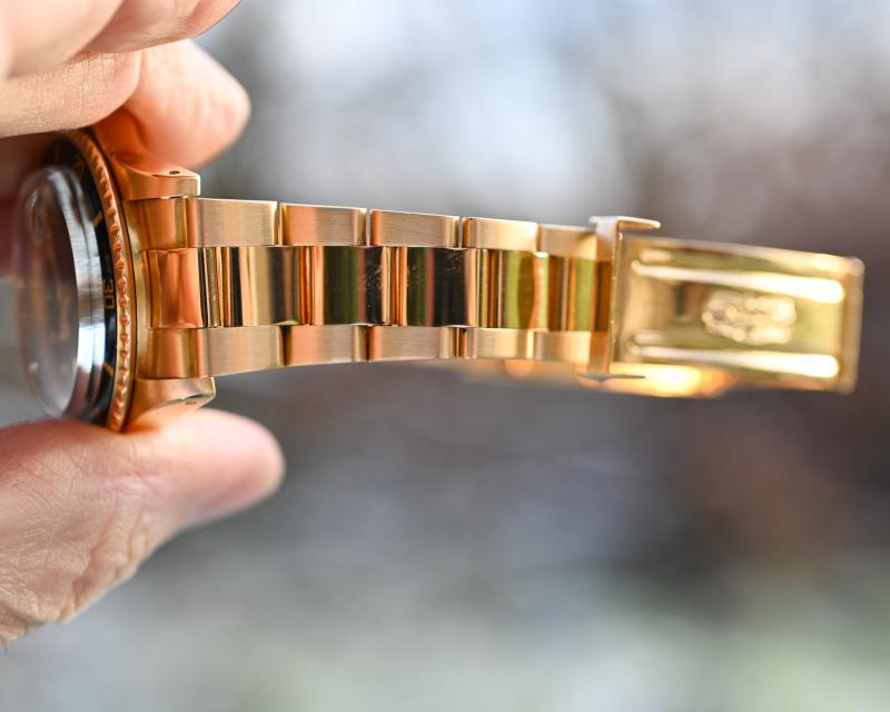 - Originales Gelbgold-Oysterband, nahezu stretchfrei und außergewöhnlich gut erhalten