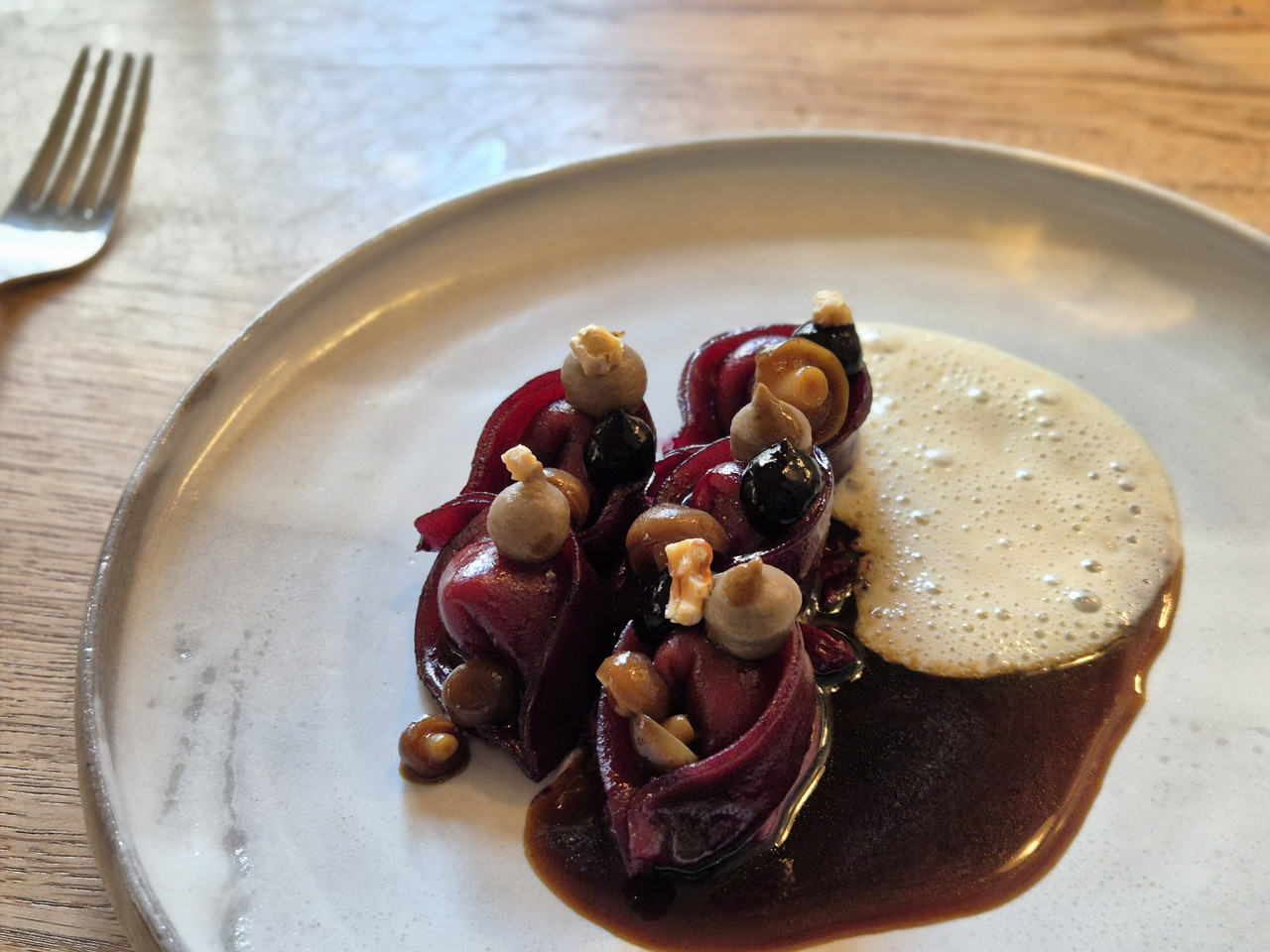 Mein Essen des Jahres und für mich eines der Restaurants mit wirklich grandiosem Preis/ Leistungs-Verhältnis… Wildhase. Der Hauptdarsteller ist hier aber nicht der perfekte Sattel vom Hasen sondern der zweite Teller hintendran. Kartoffelpüree, geschmorte Keule und eine Sauce von wirklich unglaublicher Tiefe… gemacht mit Trüffel, Blut, Rotwein und Schoko. Echte Herzensküche!