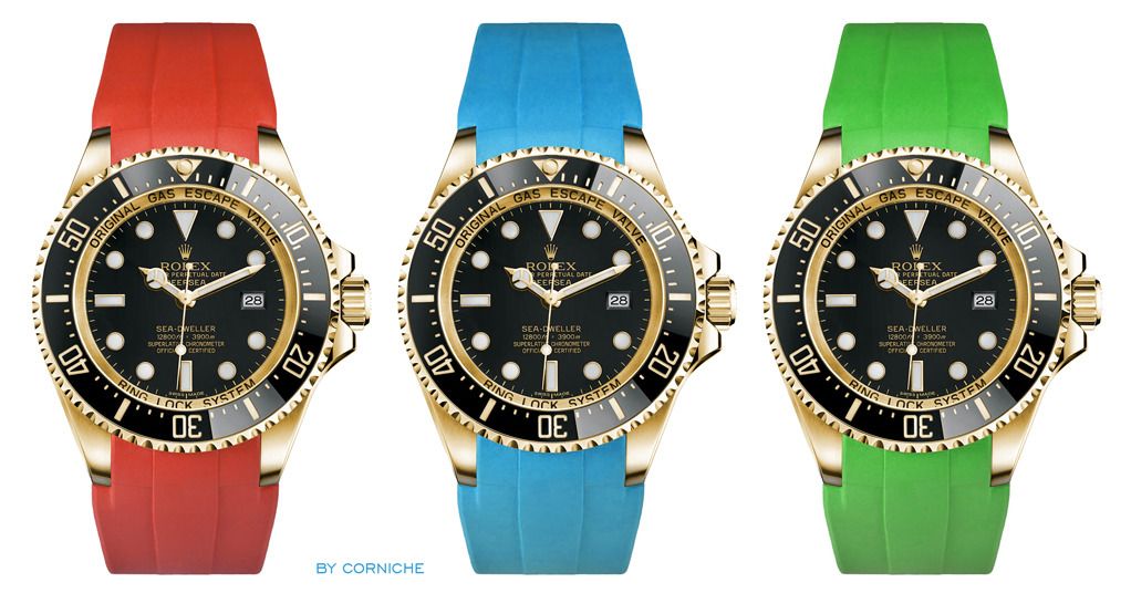 Da Rolex Rubber B heimlich übernommen hat, wird es die DS nun in Gold an diversen Kautschukbändern geben :D