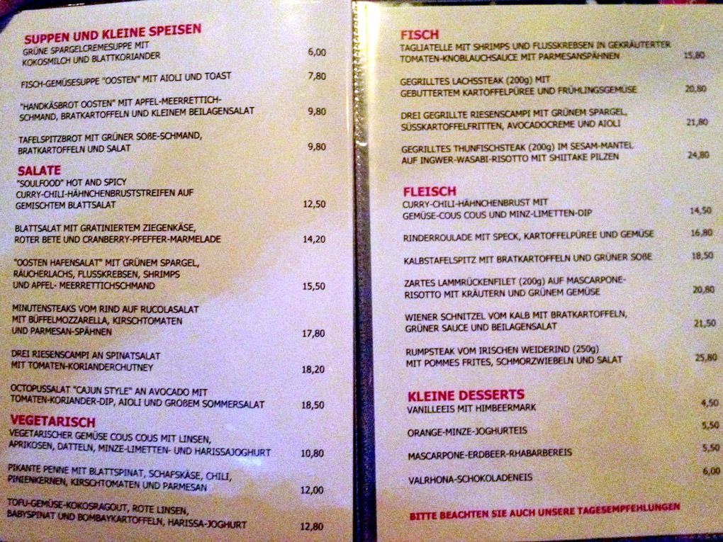 Was gibt es im oosten zu Essen, ich konnte weder auf der HP noch bei Facebool informationen finden?