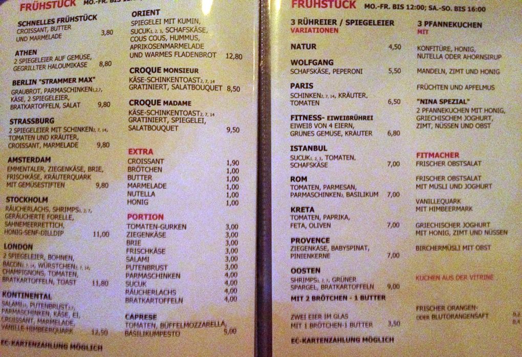 Habe das Frühstück im Osten noch nicht ausprobiert, aber auch hier noch die Karte.