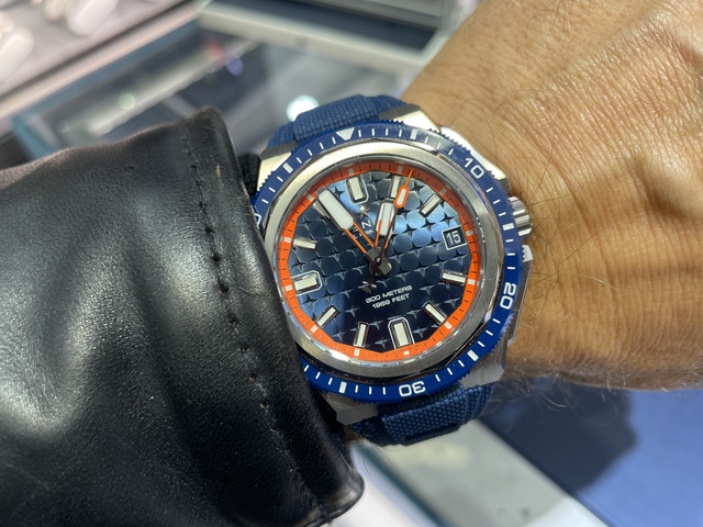 Hab die Planet Ocean auch anprobiert und war leider ein bisschen enttäuscht, allerdings hat es die Tür für eine andere geöffnet und zwar war ich hin und weg von der Zenith - Mega Uhr!