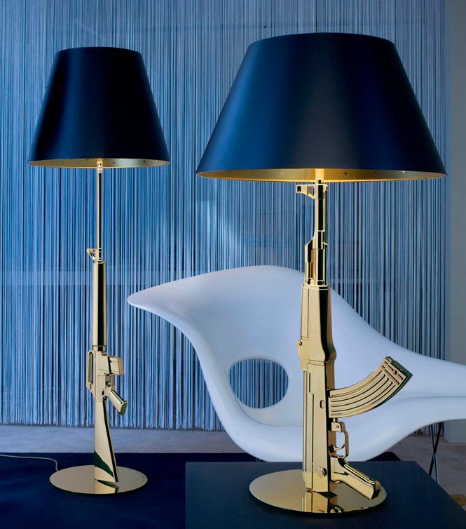2005 entwarf Philippe Starck die Gun-Leuchten mit denen er auf Missstände aufmerksam machen will, die ebenso unglaublich wie unumstritten sind.