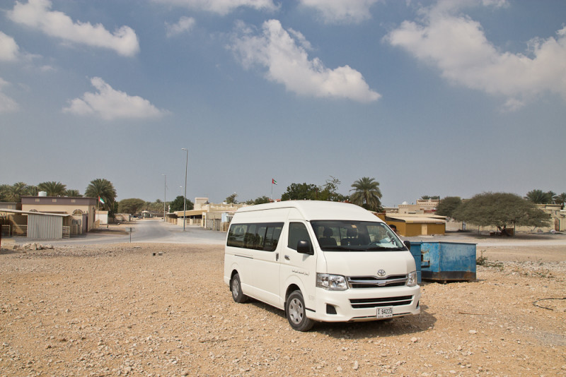 Erneut ging es mit dem Auto in Richtung der Grenze zum Oman, und von dort aus hinein ins steile Gelände. Selbst die Straße dorthin bot einen recht fotogenen Anblick. Wo sonst, außer in der Wüste, kann man solche geraden Straßen bauen?