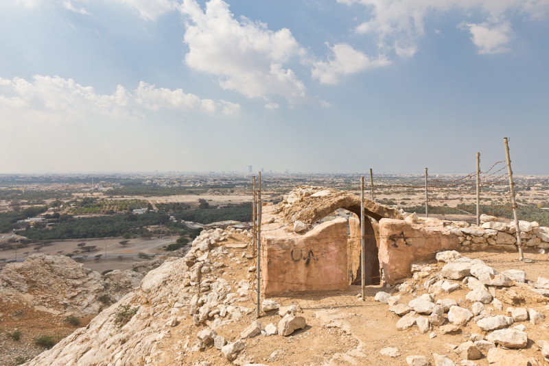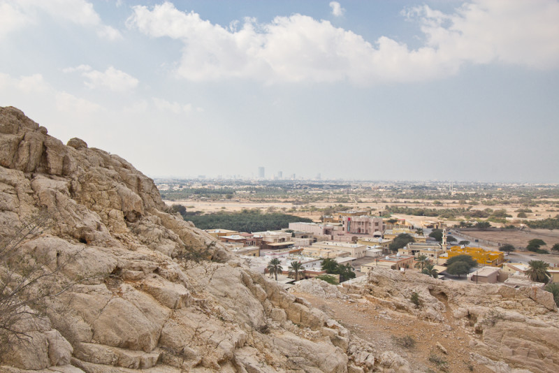 Heute steht von dem Komplex nur noch wenig. Dennoch ergibt sich von der Bergkuppe ein erstklassiger Blick über Ras Al Khaimah. Wer genau hinschaut, sieht sogar das Meer am Horizont. Für mich war es eine ganz neue Ansicht dieses Landes, das ich sonst eher nur komplett flach kenne.