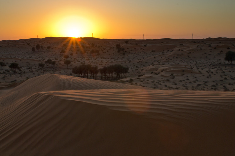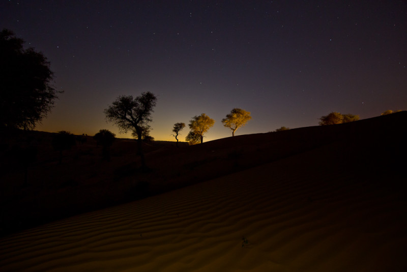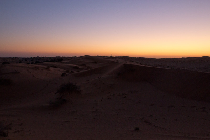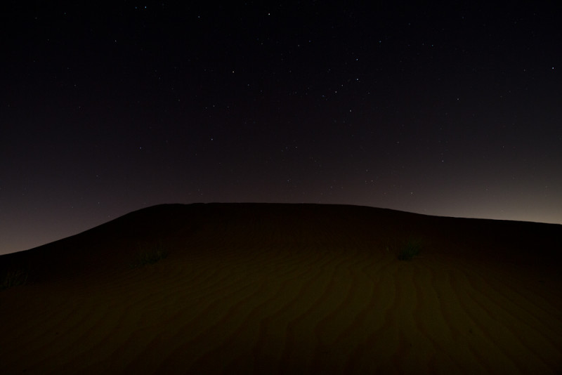 Richtig spannend wurde es aber am Abend des dritten Tages. Endlich sollte sich für mich die Möglichkeit auftun, waschechte Wüstenfotos zu machen. In der Nähe des Wüstenhotels Banyan Tree Al Wadi gab es eine Beduinenstadt für Touristen. Ich gebe zu, dass mich diese Retorten-Stadt nicht sonderlich interessierte. Viel gieriger war ich auf die Möglichkeit endlich einmal ganz alleine mit meiner Kamera in der Wüste zu stehen und hier alle Zeit der Welt für gute Fotos zu haben.