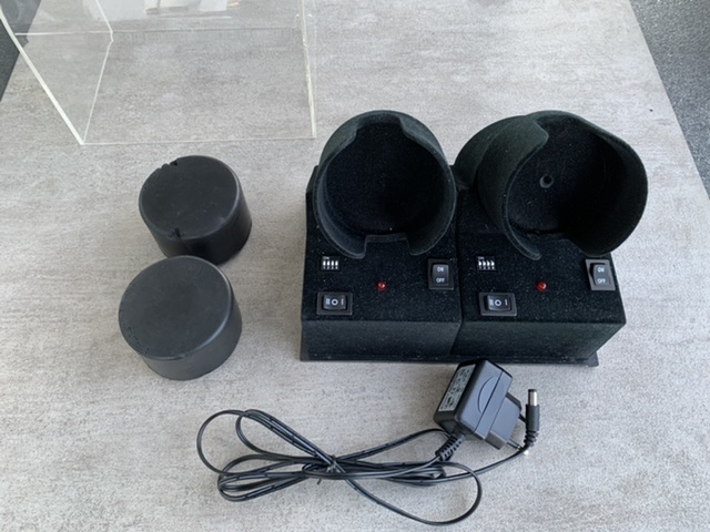 Habe hier einen stylischen Uhrenbeweger für 2 Uhren, ohne nennenswerte Gebrauchsspuren, außer die beiden Spannkissen weisen langsam die typischen Risse durch Alterung auf. Kann man aber gut ersetzen.