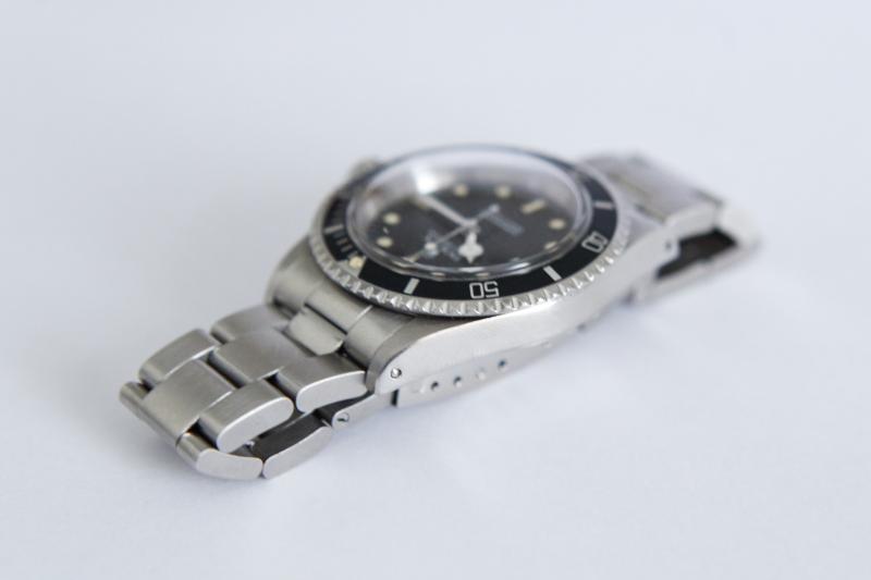 Zu verkaufen steht eine Rolex Submariner 5513 ca. aus dem Jahr 1987, R-Serie mit 93150 Band, 580 Endlinks und L4 Code auf der Schliesse. WG Dial und Tritium Zeigern. Die Uhr ist eine tolle Traguhr mit Gebrauchsspuren. Das grösste Manko sind zwei Dellen unten am Gehäuse bei 8 und 10 Uhr, die auch von der Seite leicht sichtbar sind. Auf den letzten beiden Fotos versuchte ich dies bestmöglich einzufangen.