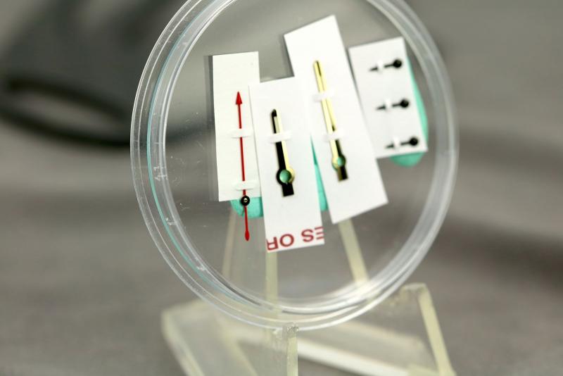 Nagelneuer Zeigersatz für die Daytona mit Rolexwerk. Roter Stopzeiger, schwarze Hilfszeiger -z.B. für PN Zifferblatt. Lume ist CL Chromalight (blau)