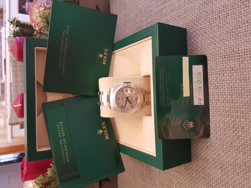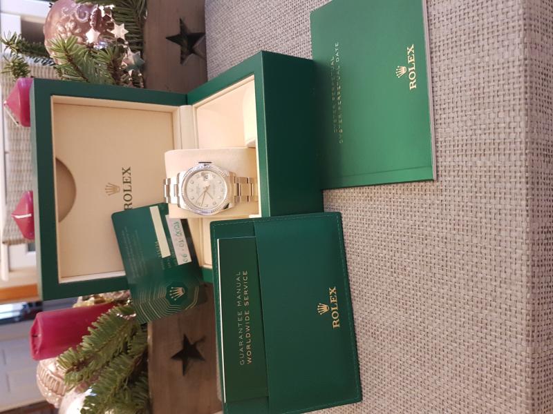 Verkaufe hier eine Date 34 mm, die Uhr ist ungetragen und noch teilverklebt , sie verfügt auch noch über den Lünettenschutz.
