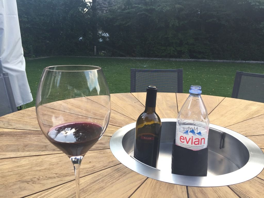 Der integrierte Kühler im Mittelkreis. Es existieren mE Bilder wo Lars die Mitte mit Eis gefüllt hat und etliche Flaschen damit gekühlt hat.