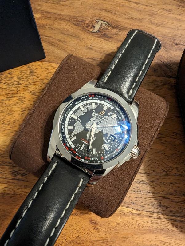 Zum Verkauf steht eine ungetragene Bretiling Galactic Unitime. Schwarzes ZB mit Lederband. Die Uhr kommt mit Umkarton, Karton, Anleitung, Chronozertifikat und ungestempelten Garantieheft.