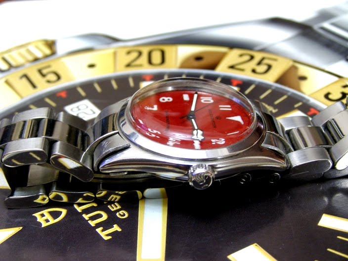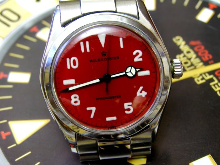 Rolex Oyster, ich schätze um 1945 mit rotem Semi-California Military Zifferblatt.