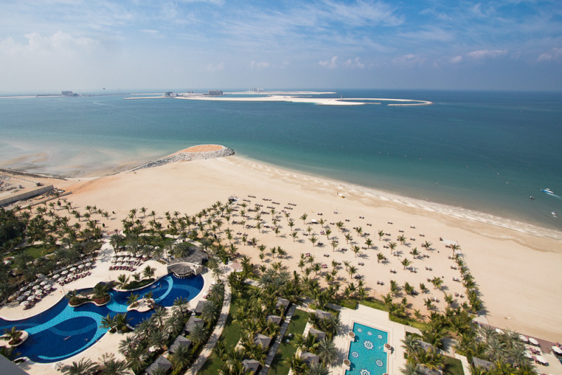 Auch wenn sich Ras Al Khaimah bewusst vom Bling-Bling Dubais distanziert, begegnet man an diversen Stellen dem VAE-typischen Willen zum Bau von Superlativen. So dürfen auch vor der Küste frisch aufgeschüttete Inseln nicht fehlen. In Anbetracht der Entfernung dürfte der Meerblick des Hotels aber nicht beeinträchtigt werden.
