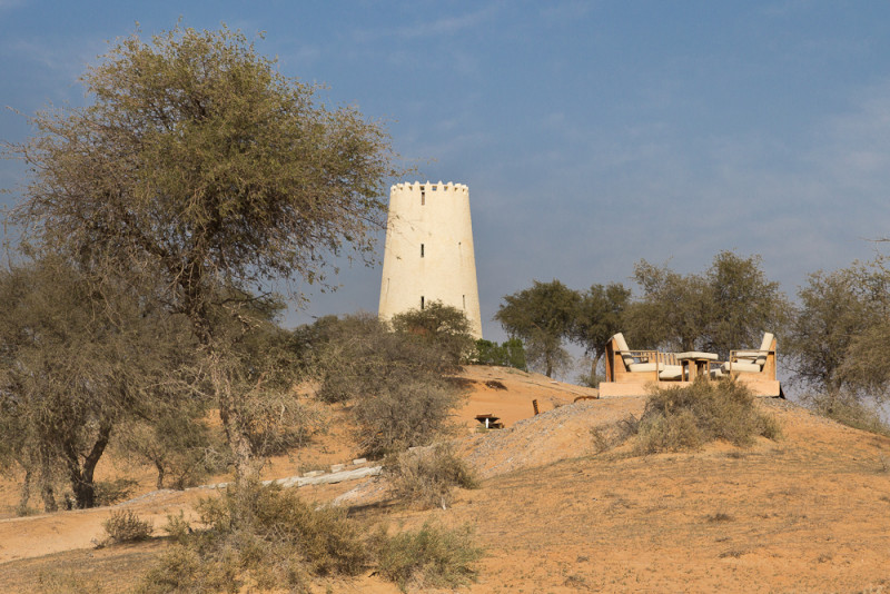 Wer schon immer mal in einer echt authentischen Unterkunft wohne wollte, der wird hier fündig. Ein alter Wachturm wurde zu einer Villa umfunktioniert. Die offene Sitzgruppe im Vordergrund ist nur eine von vielen. Wer hier Urlaub macht, kann sich sein Frühstück oder Abendessen selbst mitten in die Wüste bestellen.