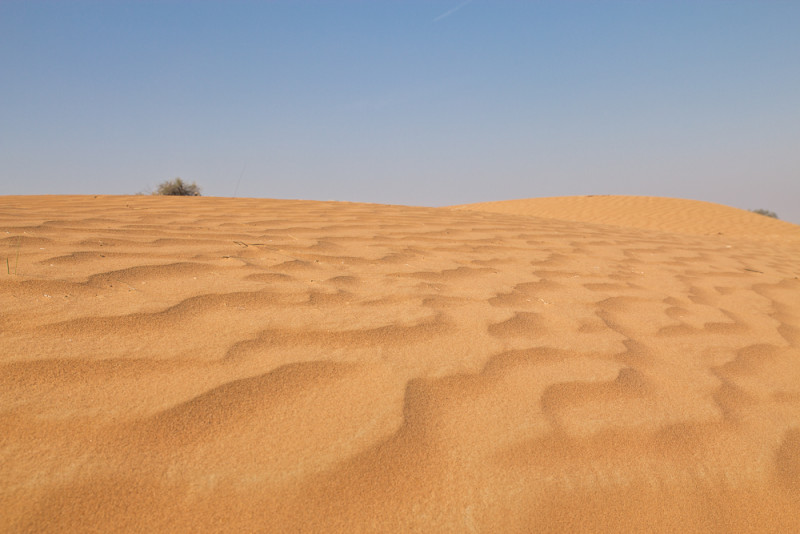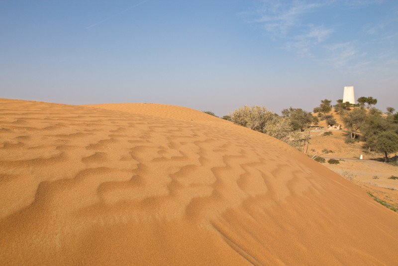 Da ich schon einmal ein wenig weiter im Landesinneren der Vereinigten Arabischen Emirate war, wollte ich mich doch gleich einmal an einem echten Wüstenmotiv versuchen. Leider schien das gar nicht so einfach, denn richtige Sanddünen waren nur an einer Seite des Hangs zu erkennen. Auch war es um die Düne herum eigentlich noch viel zu grün für meinen Geschmack.