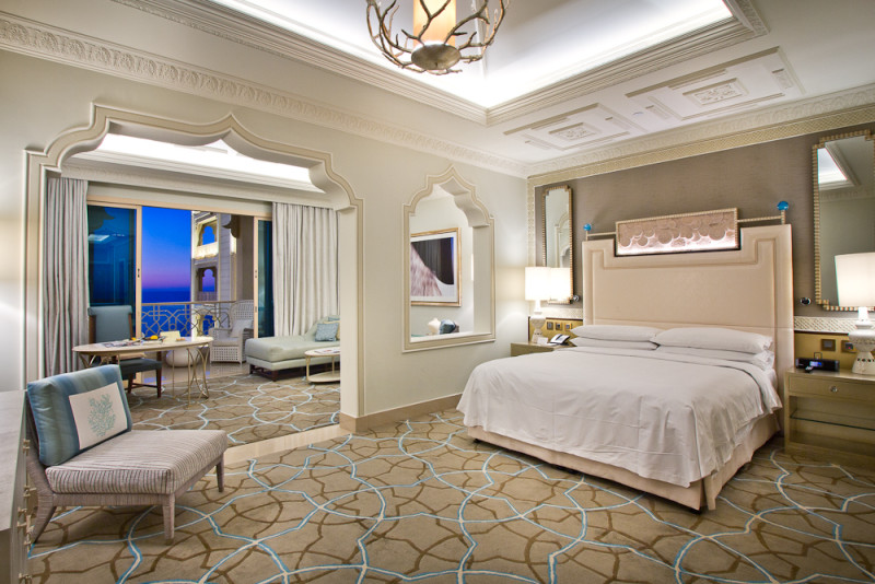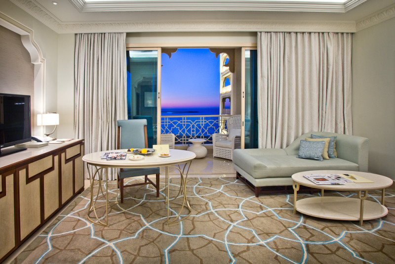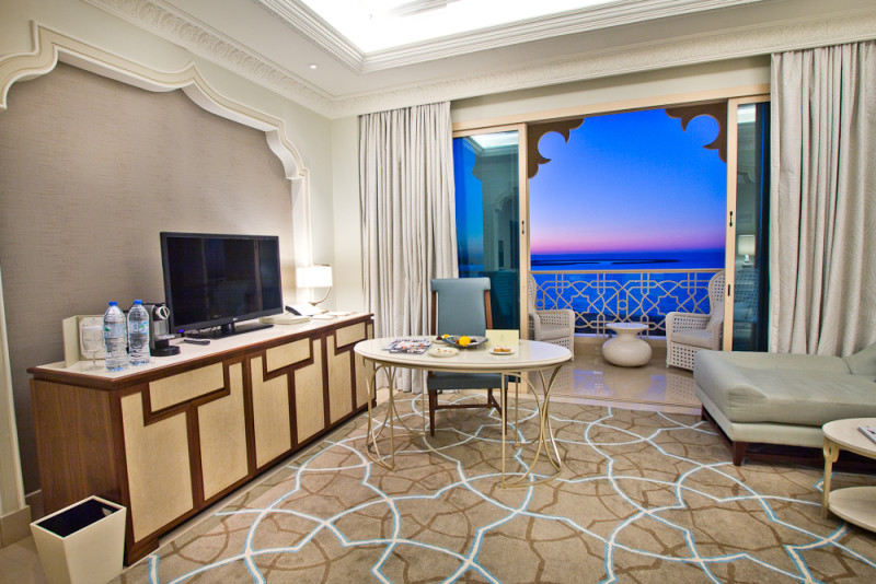 Bei der Ankunft in Ras Al Khaimah am letzten Tag war die Sonne bereits untergegangen, so dass der Checkin in meinem Hotel im Dunkeln geschah. Auch war ich froh nach dem Trubel des Erstflugs sofort ins Land der Träume reisen zu können, so dass ich erst am nächsten Morgen mein Zimmer im Waldorf Astoria genauer in Augenschein nehmen konnte.